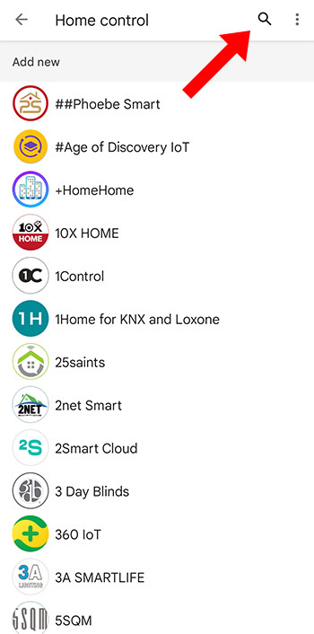 4) You'll get the list of all available services that can work with Google Home. To find Security Camera CZ, click on the "search" tool.