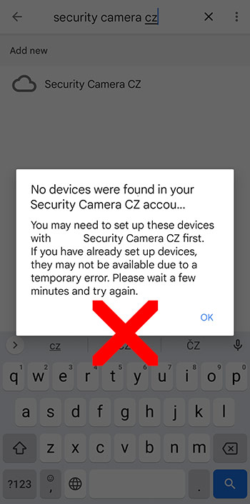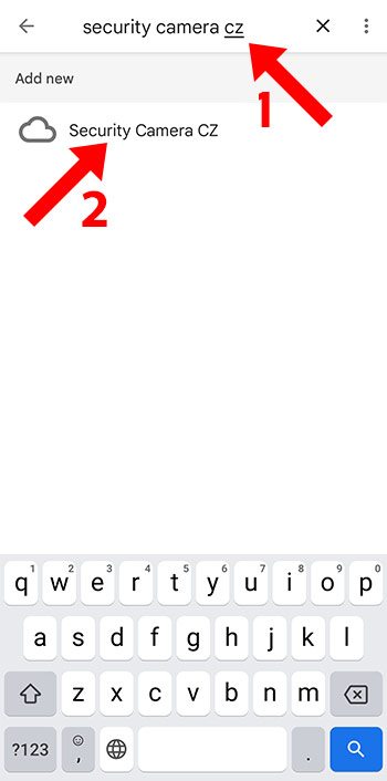 5) Type "security camera cz" and select the "Security Camera CZ" item.