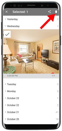 There are several ways how to delete recordings of detected motions. You can delete them one by one or you can quickly select larger set of recordings and then delete them all at once. Deleting images and videos works in the same way.
